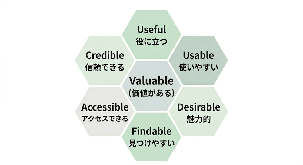 体験に当てはめると一見当たり前に見えますが、すべてを満たすのは意外と難しく、良い体験を考えるうえで欠かせない基準になります。
